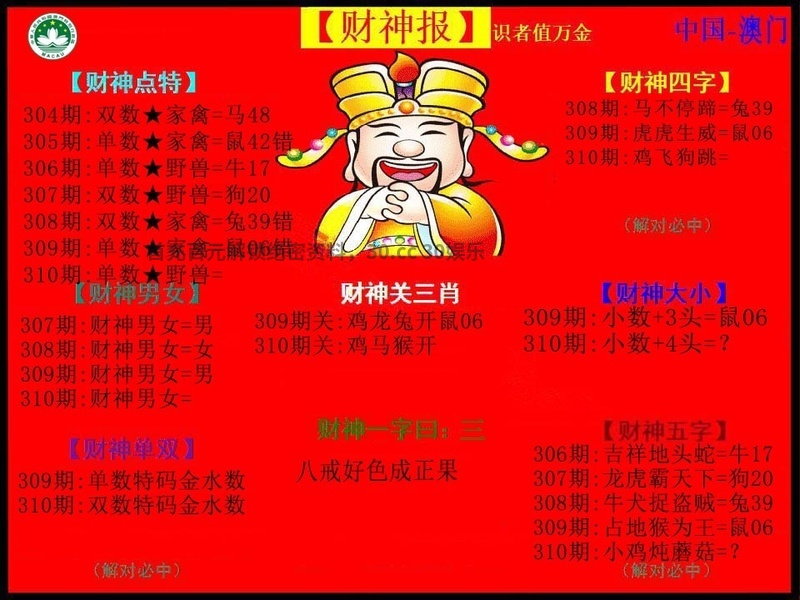 307期:九肖【兔虎羊马蛇龙猴鼠】开:狗20准